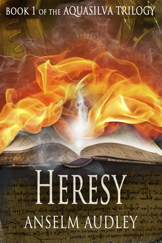 CoverHERESYsmallIn the meantime, the four Aquasilva novels will be released again over the next few weeks with an entirely new set of covers. I’m very fond of the old covers, because they’re very scenic indeed, but the licence to use the art has run out again. And covers have changed, as they do. Landscapes barely feature any more; covers have a tighter focus, whether figurative or symbolic, and usually a darker palette. So, new covers and a new look. I refuse to cast Cathan as a stubbly badass with a hood and some heavy weapons, but thanks to my excellent cover artist, I don’t have to.